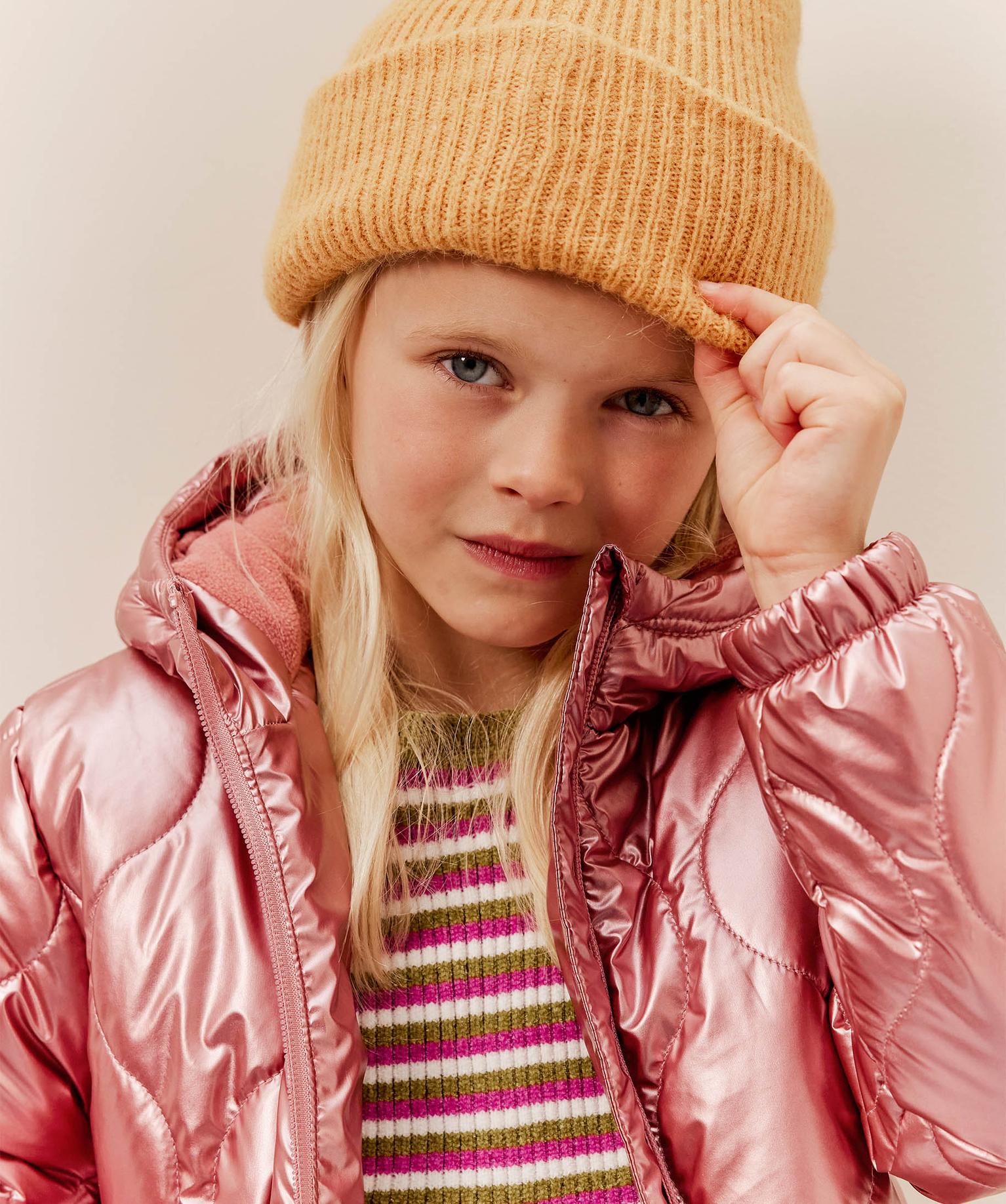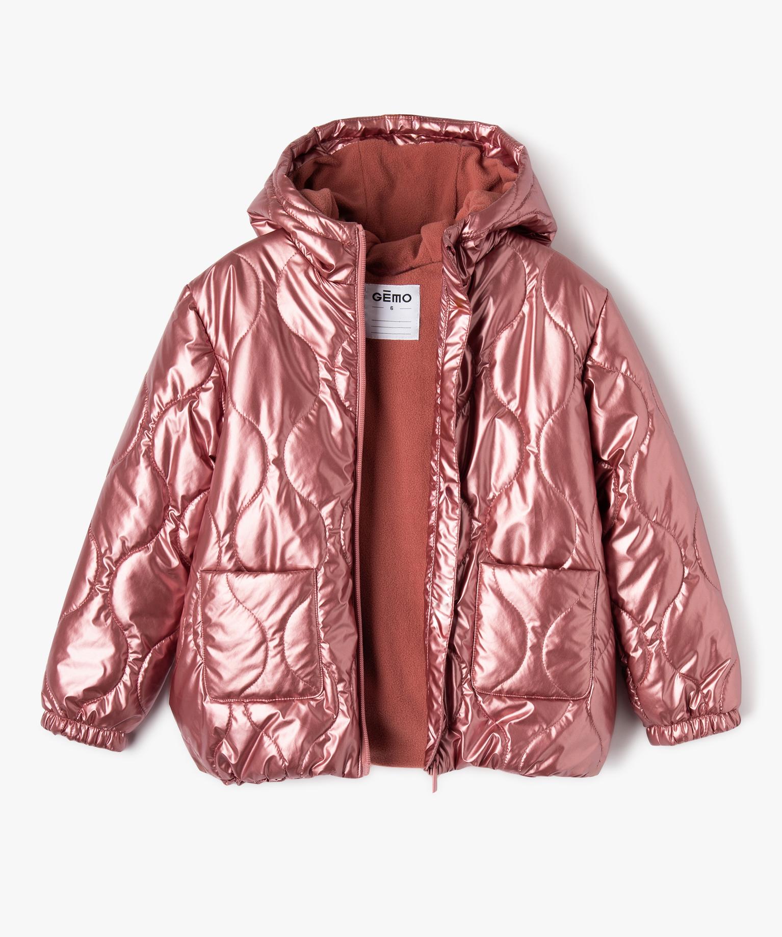 Blouson matelassé à capuche fille rose