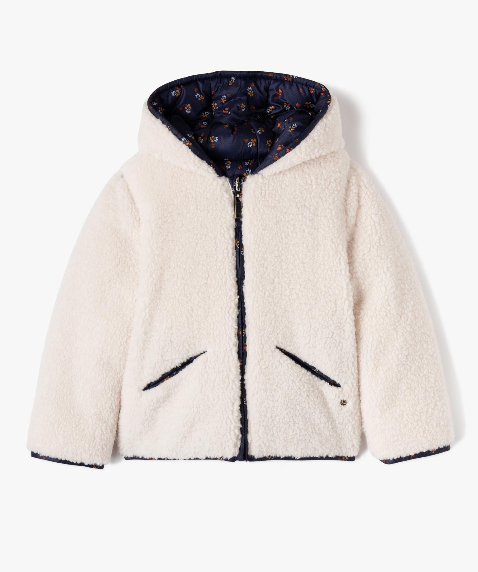 Les enfants comme les parents vont tomber sous le charme de ce joli blouson matelassé pour fille. Un blouson LuluCastagnette avec un côté en matière satinée parsemée de petites fleurs et d’un côté en maille peluche imitation laine de mouton. Ce blouson réversible permet de changer radicalement de style en un instant. Il se ferme par un zip doté d’une patte de protection sous le menton et deux poches de chaque côté. Ce blouson réchauffera toutes les tenues des petites filles.