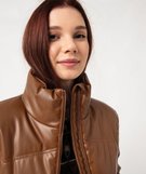 Le blouson rembourré et matelassé se décline dans un style city avec sa confection en matière synthétique cuir imitation ! Droit, avec manches resserrées aux poignets et col montant, ce manteau d'hiver s'adapte à vos looks casual chic et décontractés. On note la fermeture par zip ton sur ton avec tirette en anneau et patte de protection en haut de zip. Élastique aux poignets. Poches dans les coutures. Doublure contrastante.