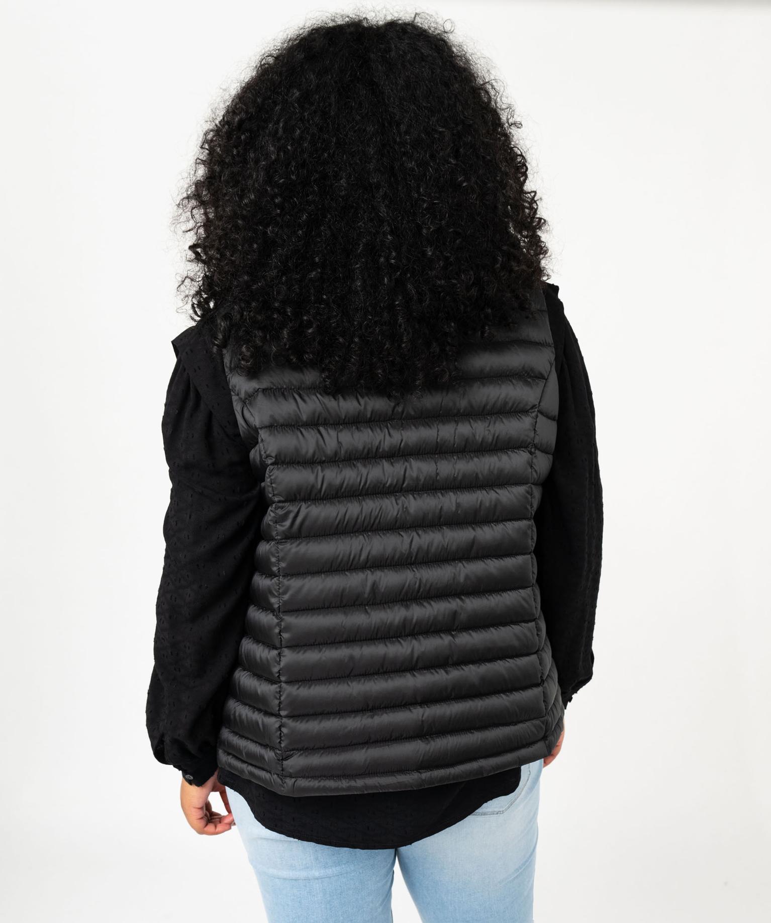 Réchauffez toutes vos tenues avec ce joli blouson sans manches. Décliné dans un coloris intemporel, facile à associer, il vous accompagne tout au long de l’année, en toutes circonstances. Ce blouson femme grande taille (du 46 au 54) séduit par sa coupe sobre, son petit col montant et sa fermeture zippée scintillante. Mention spéciale pour son rembourrage en polyester recyclé qui apporte une touche éco-responsable dans le vestiaire ! Deux poches dissimulées dans les coutures.