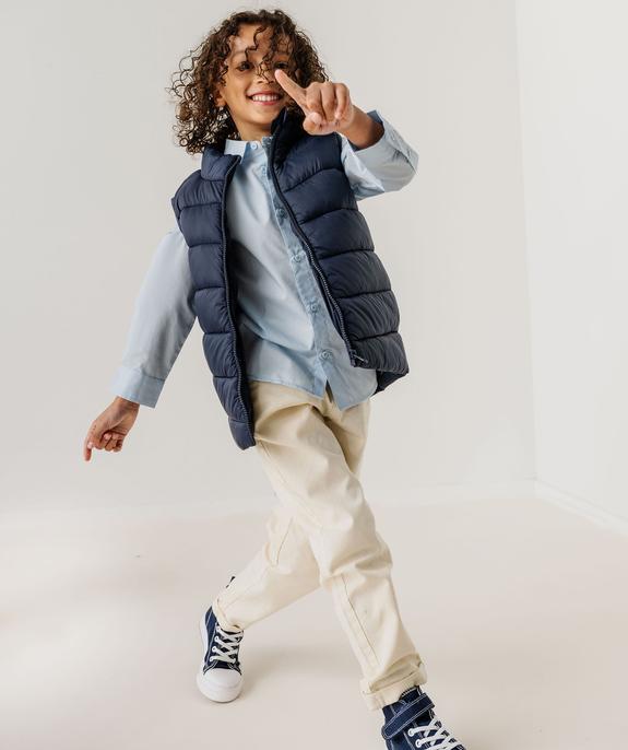 Découvrez cet incroyable blouson sans manches pour garçon, parfait pour affronter les journées froides avec style. Fabriquée avec des matériaux de haute qualité, cette doudoune à col montant offre une chaleur et une protection optimales tout en permettant une grande liberté de mouvement grâce à son design sans manches. Dotée d'une fermeture zippée et de poches dissimulées dans les coutures, elle est à la fois fonctionnelle et tendance. Que ce soit pour une journée d'aventures en plein air ou pour ajouter une couche de chaleur supplémentaire à une tenue, cette doudoune sans manches est un choix idéal pour les enfants soucieux de leur style et de leur confort. Biais élastiques aux emmanchures.