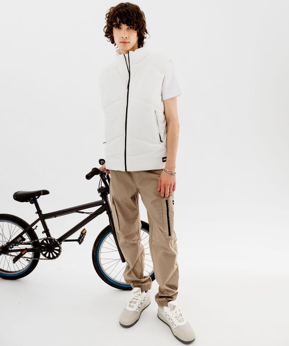 Plongez dans l'esprit 100% sportswear avec ce blouson sans manches pour homme. Cette doudoune matelassée épaisse, à la fois chaude et confortable, se distingue par sa coupe oversize, en parfaite harmonie avec les tendances actuelles. Dotée d'un col montant, de deux grandes poches zippées et d'une poche intérieure, elle offre non seulement un style affirmé mais aussi une fonctionnalité optimale. Elle réchauffera avec style toutes les tenues streetwear.