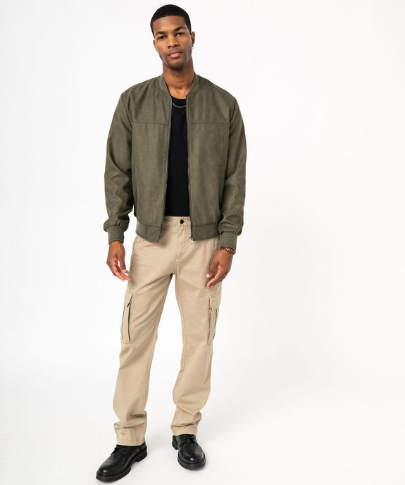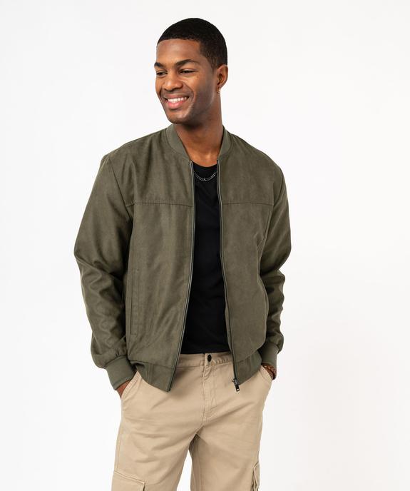 Un élégant blouson pour homme confectionné dans une matière au toucher peau de pêche très agréable à porter. Sa coupe sobre est rehaussé de surpiqûres, de liserés passepoilés qui bordent la fermeture et les poches, et de larges bord-côtes élastiqués aux poignets et dans le bas. Ce blouson, entièrement doublé d’une matière satinée non matelassée, est idéal pour réchauffer les looks de l’intersaison. Pratique, il se ferme par zip et possède deux poches raglan et une poche intérieure fermée par un bouton pression.