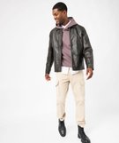 Blouson zippé en cuir imitation à col chemise homme marron clair