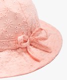 Un ravissant chapeau pour bébé fille, confectionné en broderie anglaise 100% coton et doublé d'une fine popeline ton sur ton. Il s'accordera aussi bien à une tenue de cérémonie qu'à une tenue casual au quotidien. Pour assurer un bon maintien, le bob est équipé d'un élastique invisible sur l'arrière de la tête, rehaussé d'un nœud décoratif.