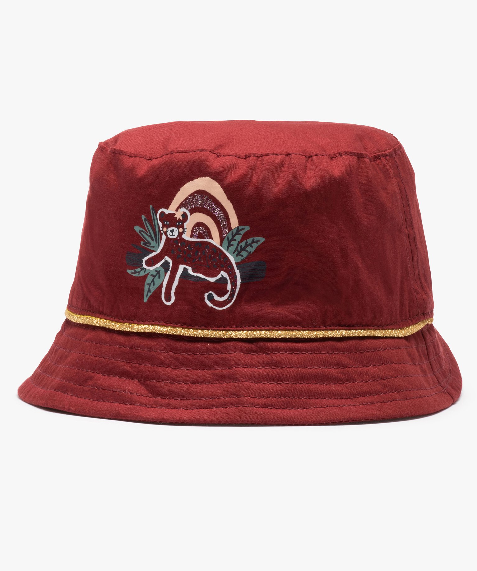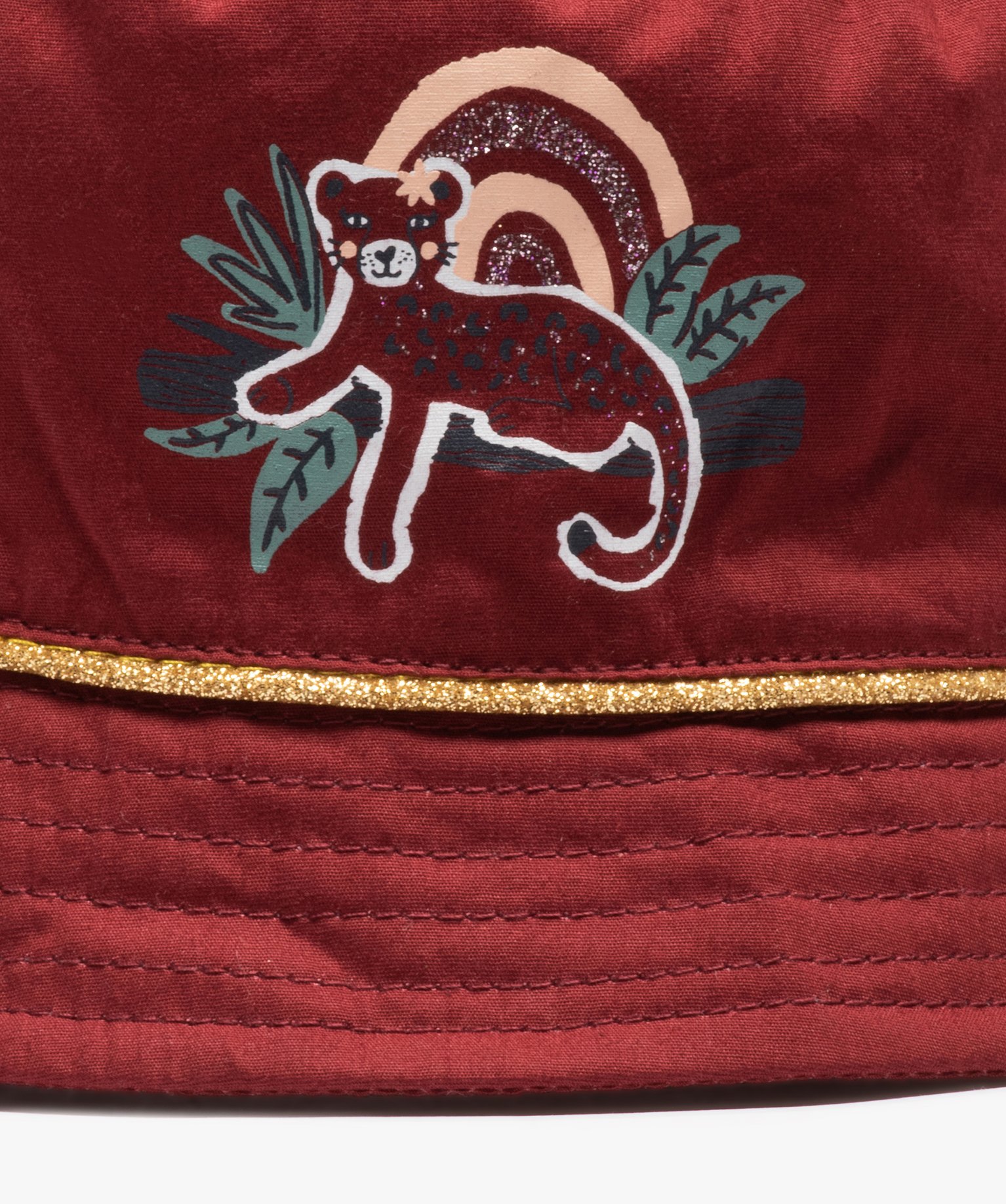 Le bob pour bébé est le chapeau idéal dès les beaux jours. Il est souple, léger, se glisse facilement dans un sac ou une poche, protège efficacement votre enfant des rayons du soleil. Mais en plus, ce chapeau est particulièrement stylé ! Ici, il est décliné dans un modèle réversible ! Le chapeau présente une face avec motif jungle pailleté et liseré doré sur le tour de la tête, et une autre face imprimée « Mini Amour en vacances ». C'est frais et plein de charme ! Petit élastique sur l'arrière de la tête pour un excellent maintien.