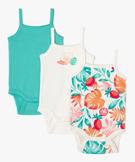 Bodies à bretelles à motifs exotiques bébé fille (lot de 3) vert