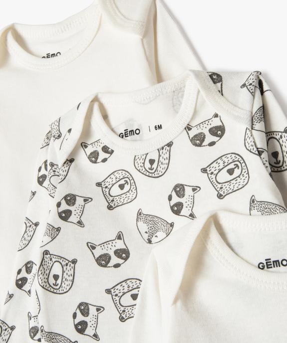 Bodies à manches longues à motifs animaux bébé (lot de 3) ecru