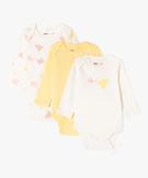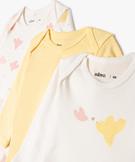 Bodies à manches longues à motifs oiseaux bébé fille (lot de 3) jaune