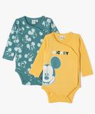 Bodies à manches longues fermeture croisée bébé garçon (lot de 2) - Disney vert