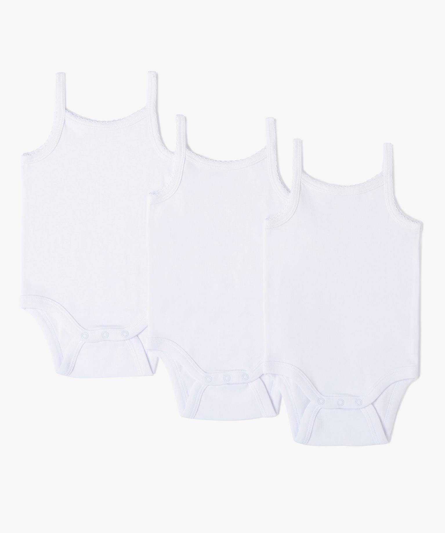 Bodies bébé à bretelles (lot de 3) 100% coton biologique blanc