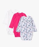 Bodies bébé à manches longues fermeture croisée (lot de 3) - No gaspi rose fonce