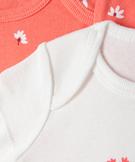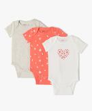 Ce lot de 3 bodies à manches courtes trouvera sa place dans le vestiaire de votre bébé. Des bodies bébé fille 100% coton biologique pour offrir plus de douceur aux enfants et un meilleur respect de leur peau sensible. Ce lot se compose d’un body uni, d’un body entièrement parsemé de motifs fleuris et d’un body avec motifs fleuris en forme de cœur sur la poitrine. Des bodies faciles à enfiler avec leur encolure américaine et leurs boutons pression à l’entrejambe.