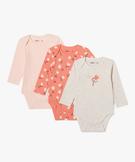 Bodies bébé imprimés à manches longues (lot de 3) rose
