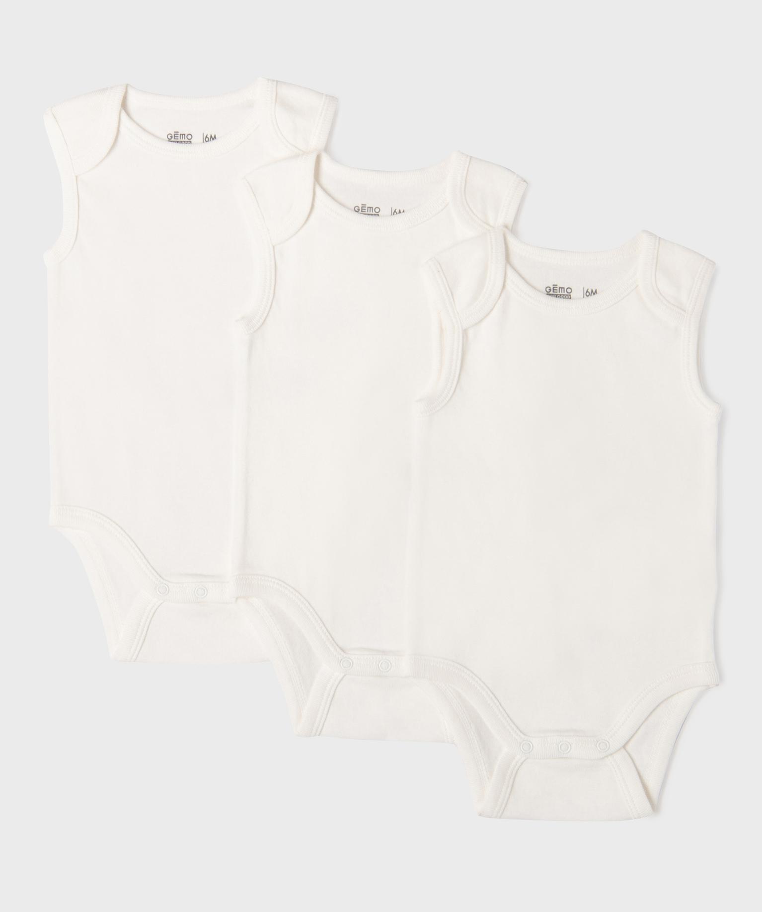 Bodies bébé sans manches (lot de 3) 100% coton biologique blanc