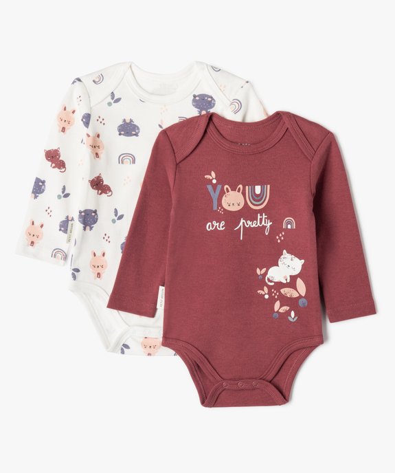 Bodies imprimés à manches longues bébé fille (lot de 2) - Petit Béguin bordeaux