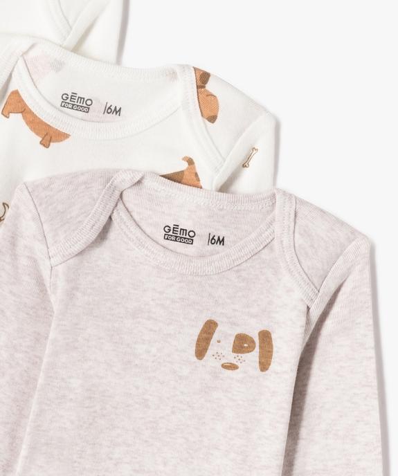 Bodies manches longues bébé motifs chiens (lot de 3) blanc