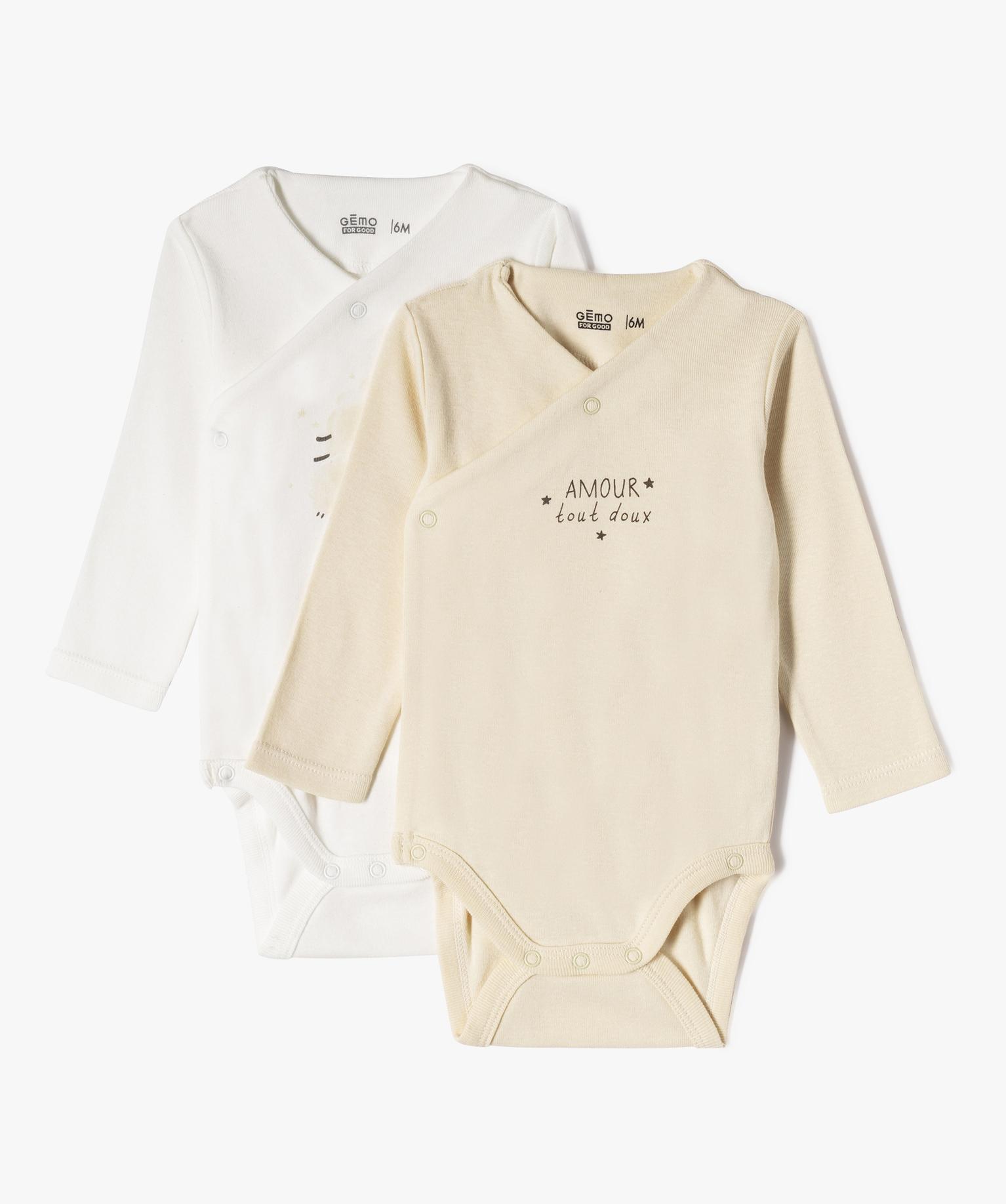 Bodies manches longues fermeture croisée devant bébé (lot de 2) ecru