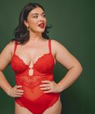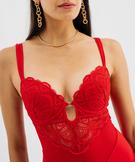 Body à armatures effet push-up en dentelle tulle et microfibre femme rouge