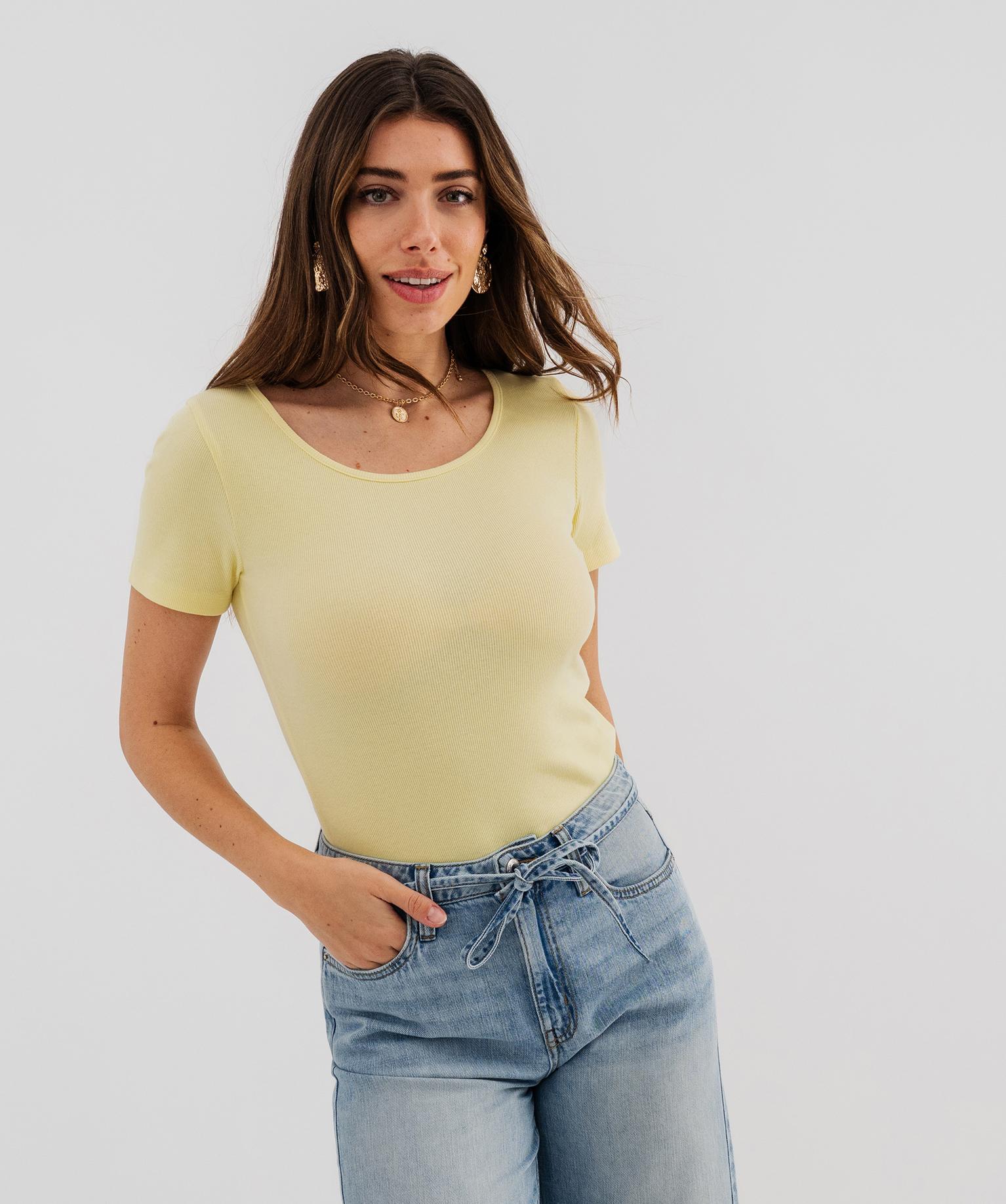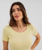 Fini le tee-shirt qui sort du pantalon ! Pour plus de confort et une tenue impeccable en toutes circonstances optez pour le body à manches courtes. Confectionné dans une maille extensible finement côtelée, ce body pour femme épouse parfaitement la silhouette tout en offrant une agréable liberté de mouvement. Son large col rond, souligné par un biais élégant, met en valeur le décolleté. Pratique, il se ferme par des boutons-pression à l’entrejambe. Il se porte comme un tee-shirt, avec un pantalon ou une jupe pour un look à la fois chic et moderne.