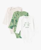Le body bébé à manches longues possède un col américain qui s'élargit pour un habillage facile. Il est doté d'un entrejambe pressionné pour un change rapide et confortable, sans dévêtir bébé complètement. Il est vendu en lot de 3 bodies différents pour se faire plaisir côté style, tout en faisant des économies. Ainsi, le lot comprend : un body chiné uni, un body avec imprimé crocodile all over et un body avec un motif crocodile placé au niveau de la poitrine.