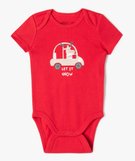 C'est Noël dans le vestiaire des tout-petits avec cet adorable assortiment de bodies manches courtes ! Un lot de 3 bodies bébé à col américain pratique et économique. Ces bodies bébé sont faciles à enfiler par la tête ou par le bas, grâce à leur décolleté large et souple, et leur entrejambe pressionné. On est sous le charme de leurs différents motifs aux couleurs de Noël. Le lot comprend :