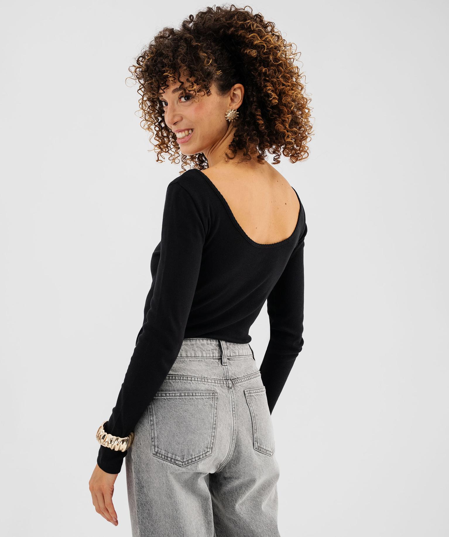 Body à manches longues en maille côtelée femme noir