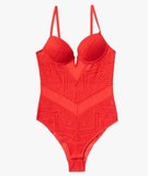 Body avec bonnets push-up en dentelle graphique femme rouge