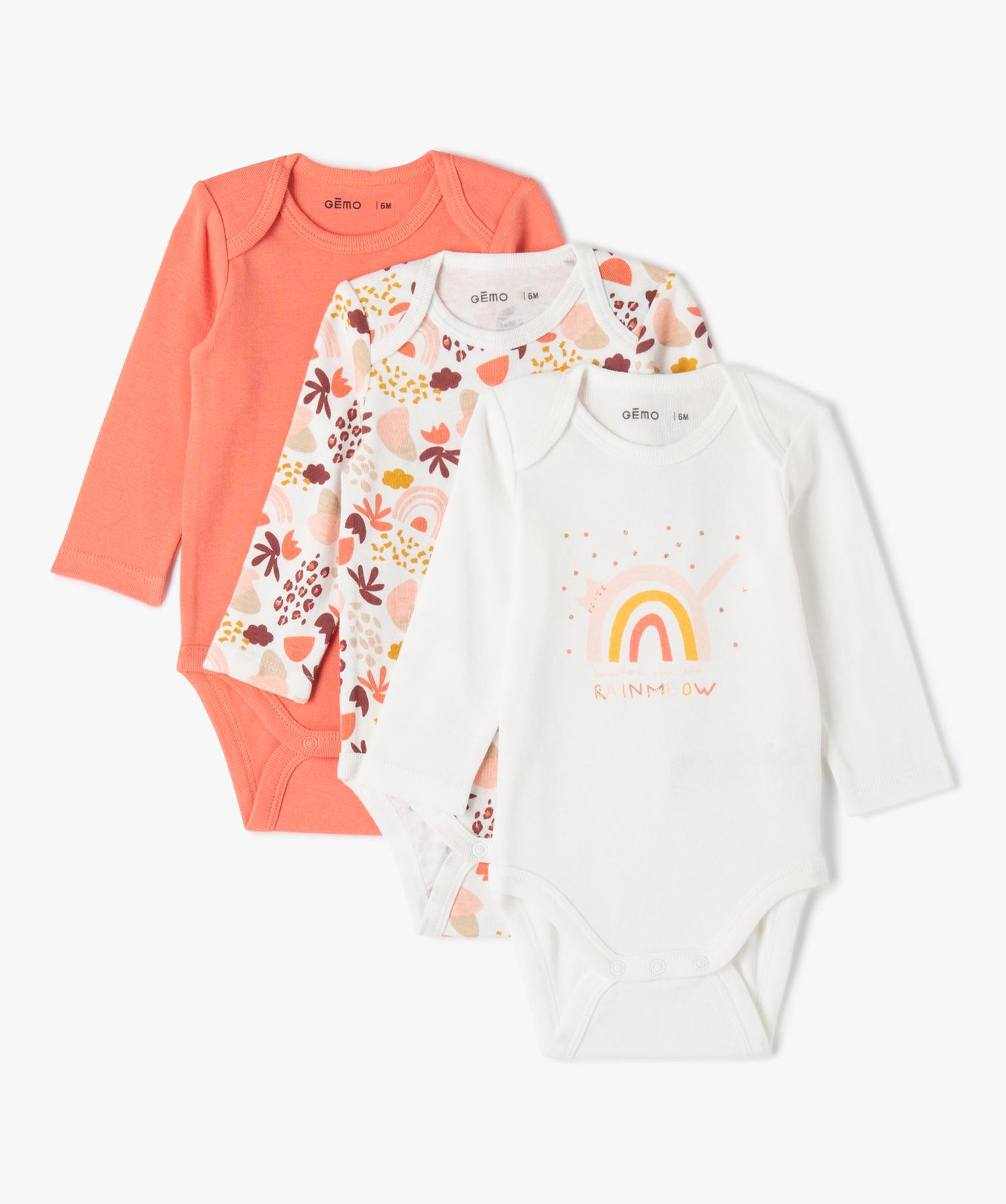 Body bébé à manches longues et motifs (lot de 3) ecru