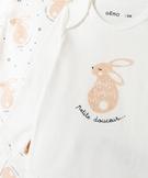 Ce charmant lot de bodies à manches longues est une vraie petite douceur dans le vestiaire de bébé ! Les bodies bébé sont déclinés dans des couleurs neutres et claires, avec d'adorables motifs. Leur encolure américaine et leur entrejambe pressionné facilitent l'habillage et le change. Ce lot de 3 bodies se compose d’un body à manches longues blanc, d'un body à manches longues avec un motif lapin placé sur le devant et d'un body à manches longues parsemé de petits lapins et de l'inscription "petite douceur".