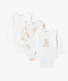 Body bébé en coton biologique à manches longues et col US (lot de 3) beige