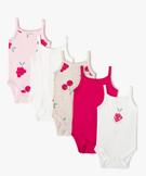 Vous allez craquer pour ce lot de 5 bodies bébé fille déclinés dans de jolies couleurs et ornés de motifs girly. Des bodies à fines bretelles aux finitions festonnées, qui se glisseront sous toutes les tenues estivales. Ces bodies en coton biologique sont non seulement élégants, mais aussi plus doux pour la peau et plus respectueux de la planète ! Ils se ferment par boutons pression à l’entrejambe.