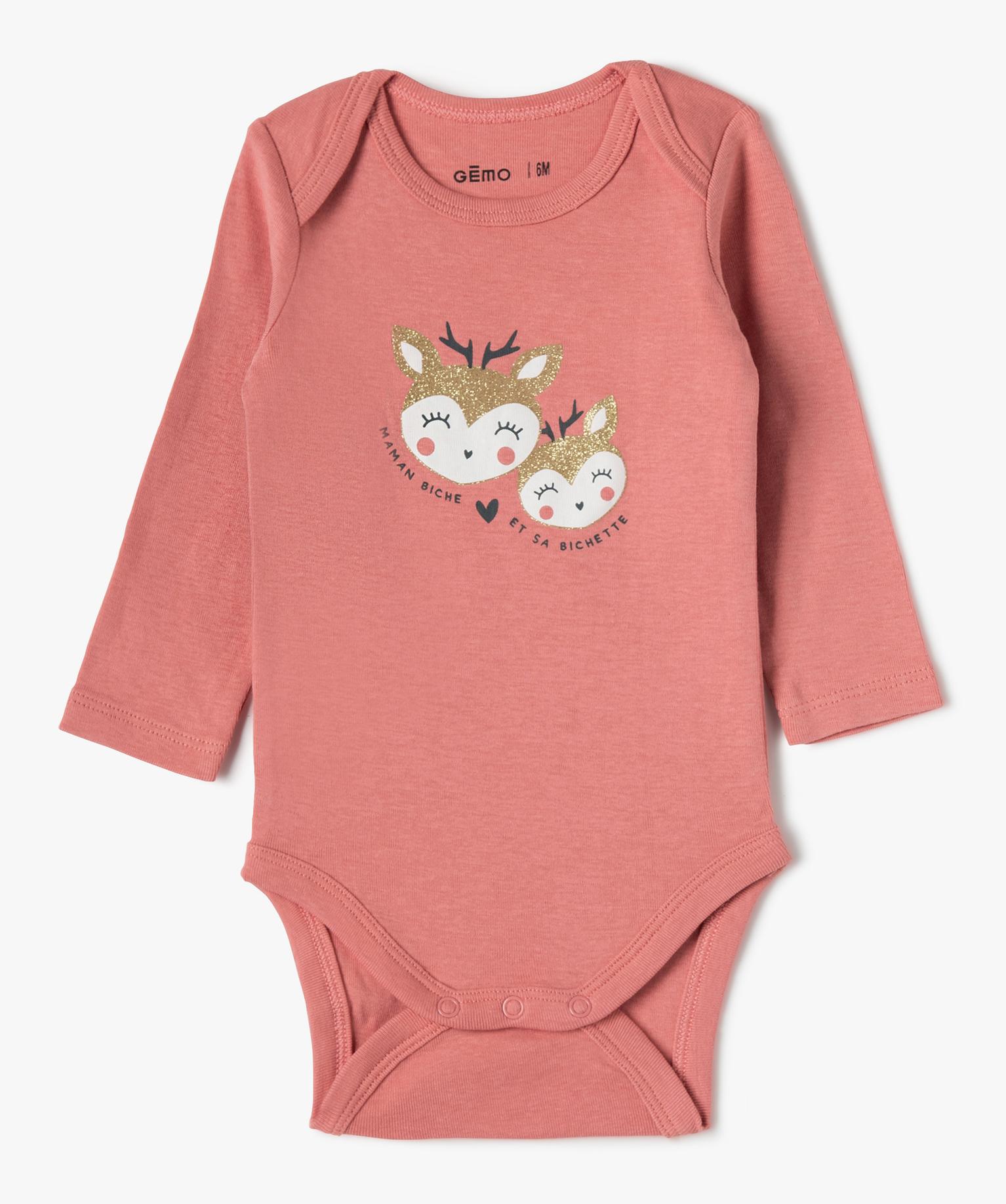 Body bébé fille manches longues avec motif biche (lot de 3) vert vif