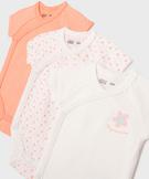 Ce lot de bodies à manches courtes ajoutera une irrésistible touche girly dans la collection de votre bébé. Ils sont déclinés dans des couleurs tendres et ornés d’adorables petites fleurs. Confectionnés en coton biologique, ces bodies bébé fille offrent douceur et respect des peaux fragiles. Des bodies ouverts sur l’avant dotés de boutons pressions sur le côté et à l’entrejambe. Ce lot se compose d’un body uni, d’un modèle parsemé de fleurs et d’un avec motif sur la poitrine.