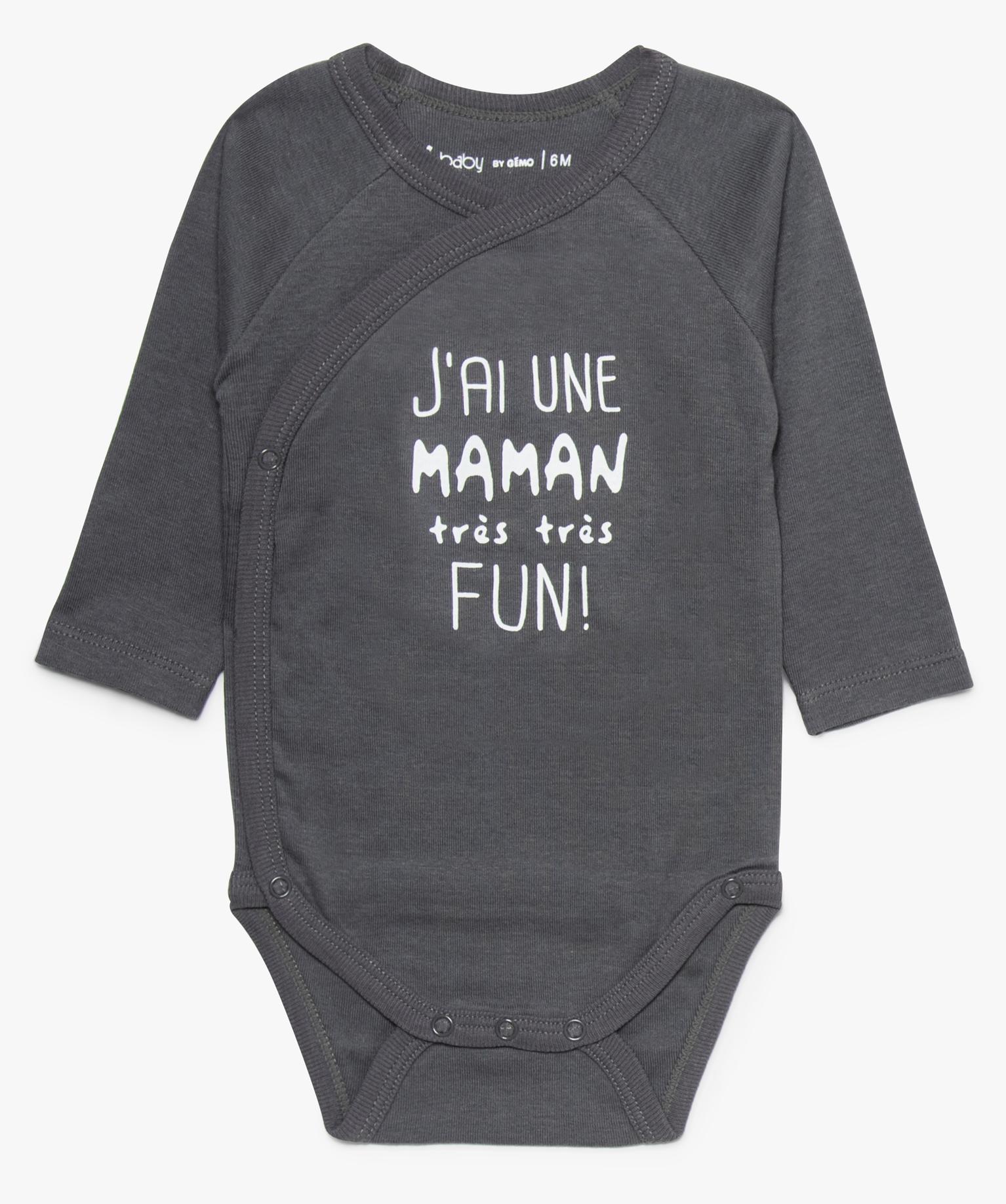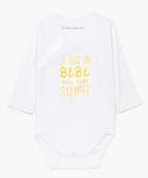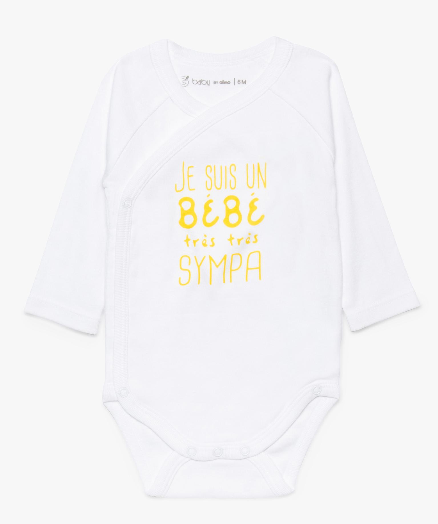 Les bébés n’ont jamais assez de bodies dans leur dressing. Grâce à ce lot de 3 bodies en coton vous ne serez plus à court. Ces 3 bodies croisés se ferment par boutons pression sur l’avant et au niveau de l’entrejambe pour faciliter le change. Ils possèdent des manches longues idéales lorsqu’il fait frais mais peuvent aussi se porter seuls pour laisser apparaître l’inscription humoristique sur l’avant. Ces bodies bébé 100% coton biologique sont encore plus doux et confortables.