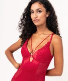Body en dentelle et microfibre femme rouge