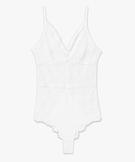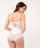 Iconique body pour femme, avec son décolleté plongeant rehaussé d'un jeu de liens festonnés réunis par un anneau doré ! Sa sublime dentelle moderne dynamisée par un empiècement en microfibre sur le ventre et dans le bas du dos dévoile juste ce qu'il faut pour une allure sexy. Doté de bretelles ajustables et d'une patte de maintien réglable entre les omoplates, le body présente un dos ouvert au décolleté profond. On aime ses bonnets triangles sans armatures pour un charme naturel et sa taille marquée d'un bandeau microfibre. Pratique et confortable, le body présente un fond doublé de coton et équipé de 3 petits boutons-pression.