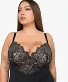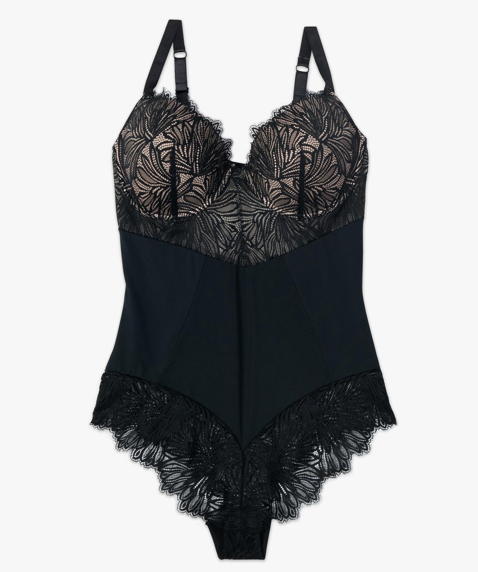 Ce body de la nouvelle collaboration Gémo x Lalaa Misaki sublime vos courbes et vous apporte un agréable effet gainant ! Le mix de matières – dentelle et microfibre – sculpte la silhouette pour un effet visuel glamour et séduisant. Ce body grande taille pour femme (du 100D au 115E) possède des bonnets à armatures préformés et finement paddés. Ils sont recouverts d'une dentelle extensible, que l'on retrouve sous la poitrine, les cuisses et les fesses, pour un joli jeu de transparence. Ses découpes, sa doublure gainante sur l'avant et les côtés, son renfort sous poitrine vous garantissent maintien et confort. Un confort renforcé par de larges bretelles ajustables, un système de fermeture par agrafes au dos, un entrejambe pressionné réglable et doublé de coton. Ce body vous façonnera une silhouette ultra-féminine aussi bien sous vos vêtements que visible sous un blazer ou une chemise transparente !