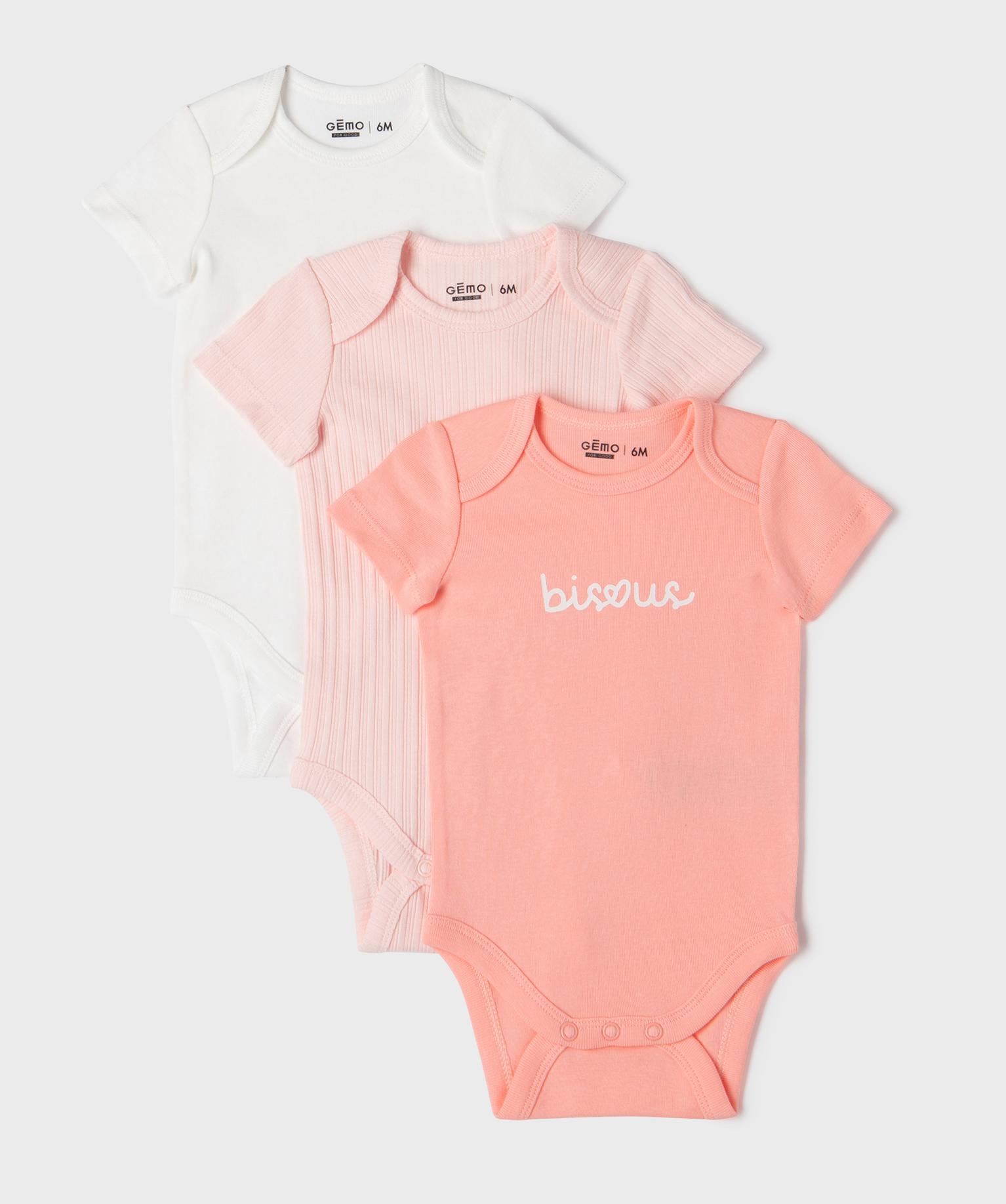 Body manches courtes encolure américaine bébé fille (lot de 3) rose clair