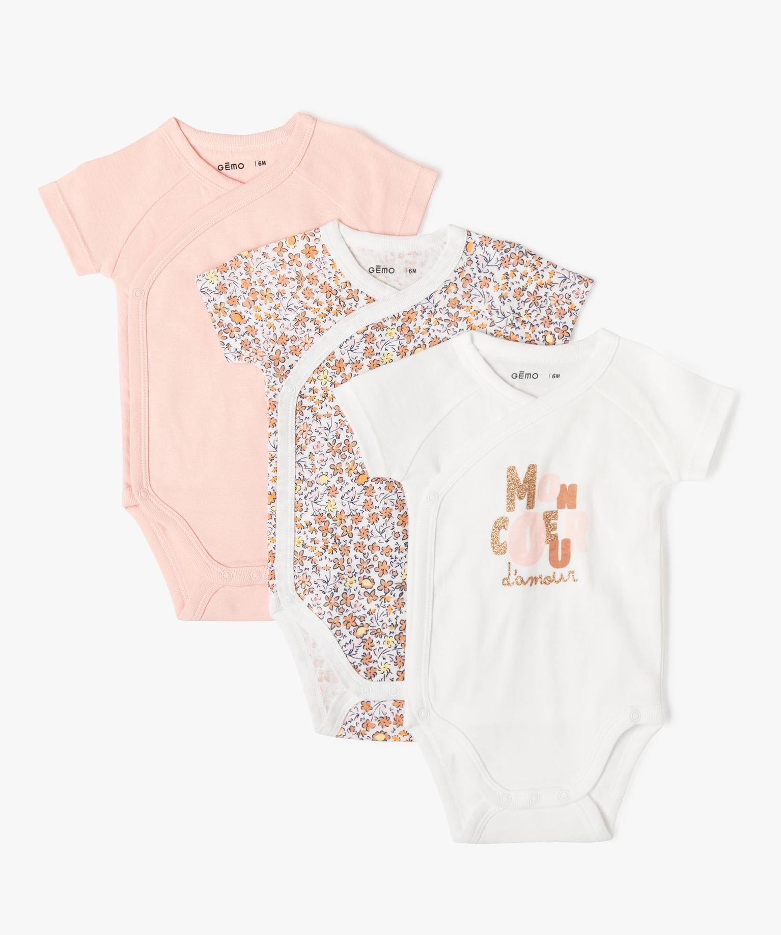 Body manches courtes fermeture croisée bébé (lot de 3) ecru