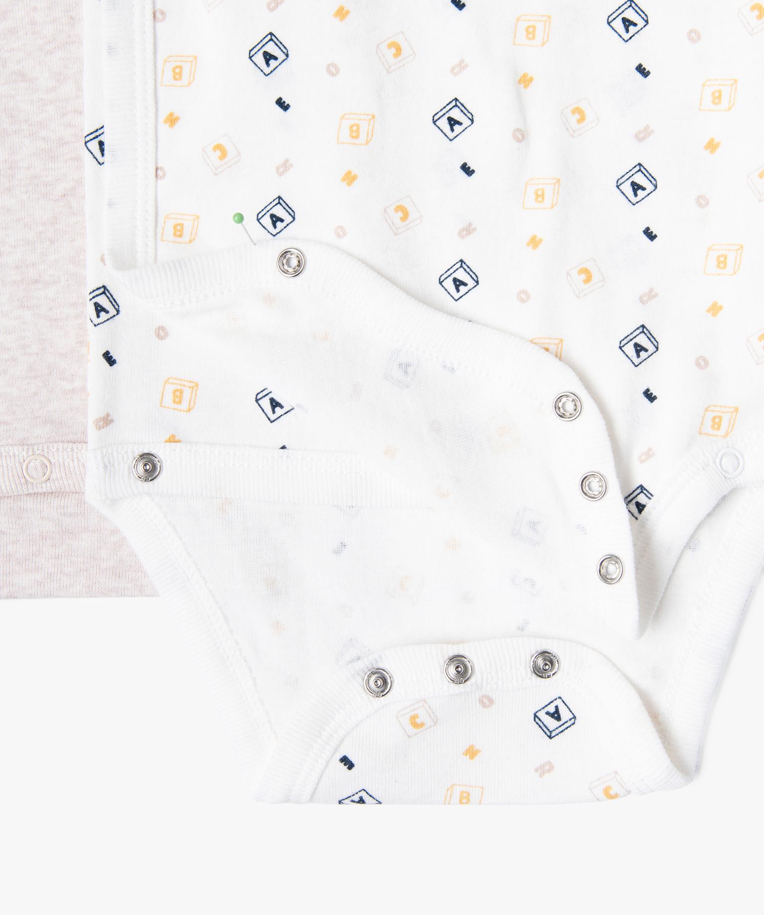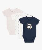 Pour votre « cœur d'amour » choisissez ce lot de bodies bébé. Des bodies faciles à enfiler, tout doux, et adorablement décorés. Vendus en lot de 3, ils vous permettent d'avoir toujours les essentiels de bébé sous la main et de faire d'intéressantes économies. Équipé d'une fermeture pressionnée devant, chaque body est facile à enfiler, surtout pour les nouveau-nés et les jeunes parents. Entrejambe pressionné. Manches raglan courtes confortables. Le pack comprend 3 bodies assortis : 1 body coloré avec message « Mon cœur d'amour », 1 body parsemé de petits motifs géométriques et 1 body chiné.