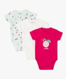 Body manches courtes ouverture devant bébé (lot de 3) rose