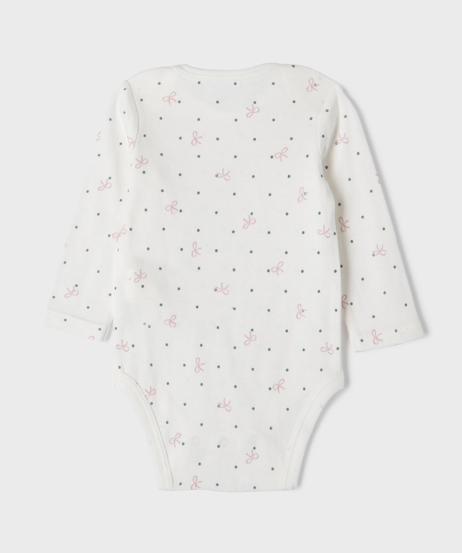 Ce lot de 3 bodies à manches longues habille bébé de confort tout au long de la journée. Confectionnés en coton biologique doux et respirant, ils sont parfaits pour respecter la peau délicate des bébés. Ce lot de bodies pour bébé fille se compose d’un modèle uni, d’un body entièrement parsemé de petits noeuds et d’un troisième orné d’un petit motif sur la poitrine. Ils sont dotés d’une encolure américaine qui s’élargit pour faciliter le passage de la tête et de pressions à l’entrejambe qui facilitent le change. Un indispensable du trousseau de naissance, pratique et plein de charme !