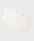 Body manches longues en coton uni bébé (lot de 3) blanc