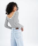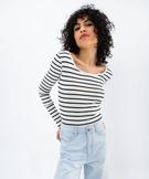 Body manches longues en maille côtelée à rayures femme blanc chine