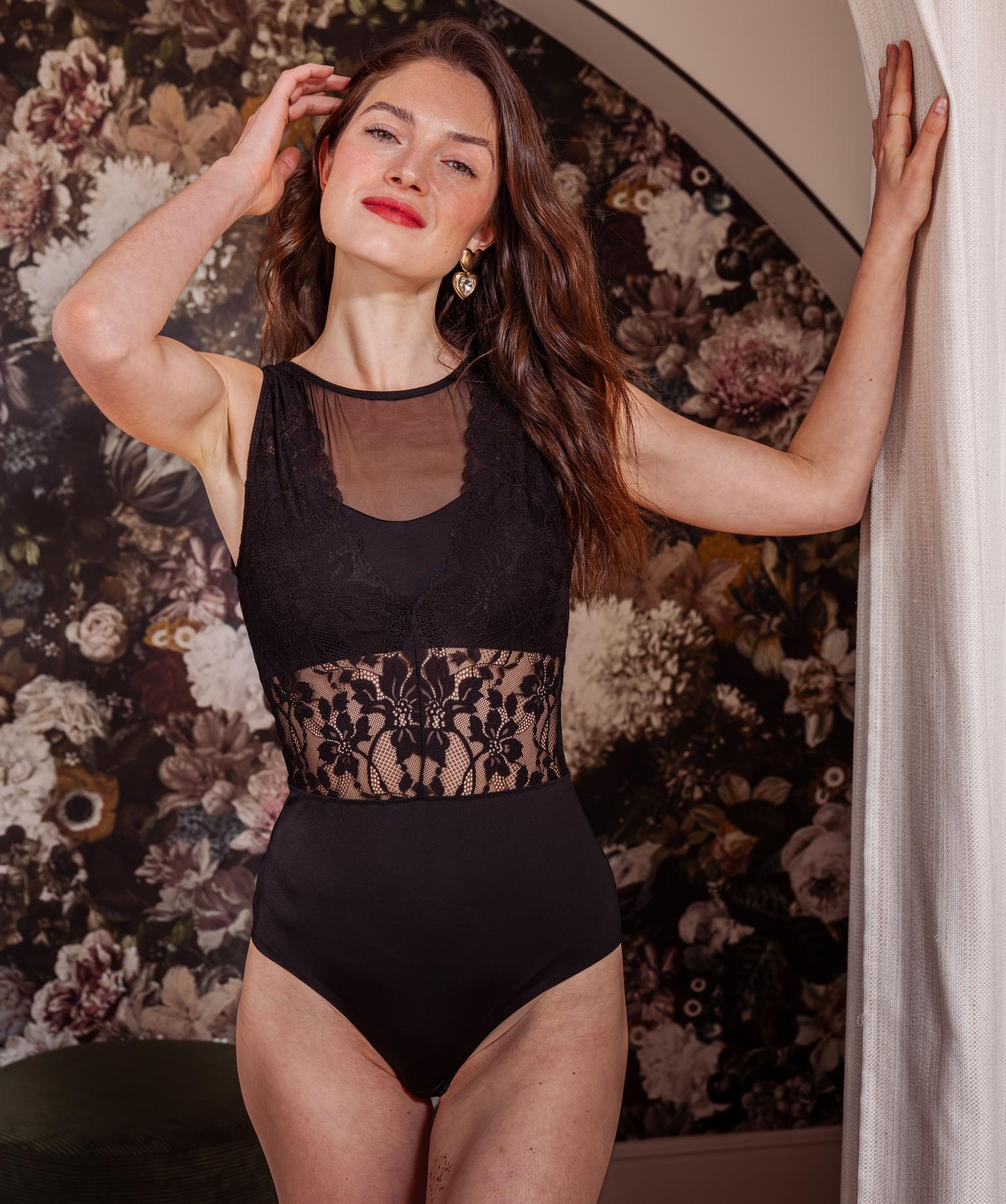 Body sans armatures à bonnets paddés en dentelle, tulle et microfibre femme[MISSING] noir