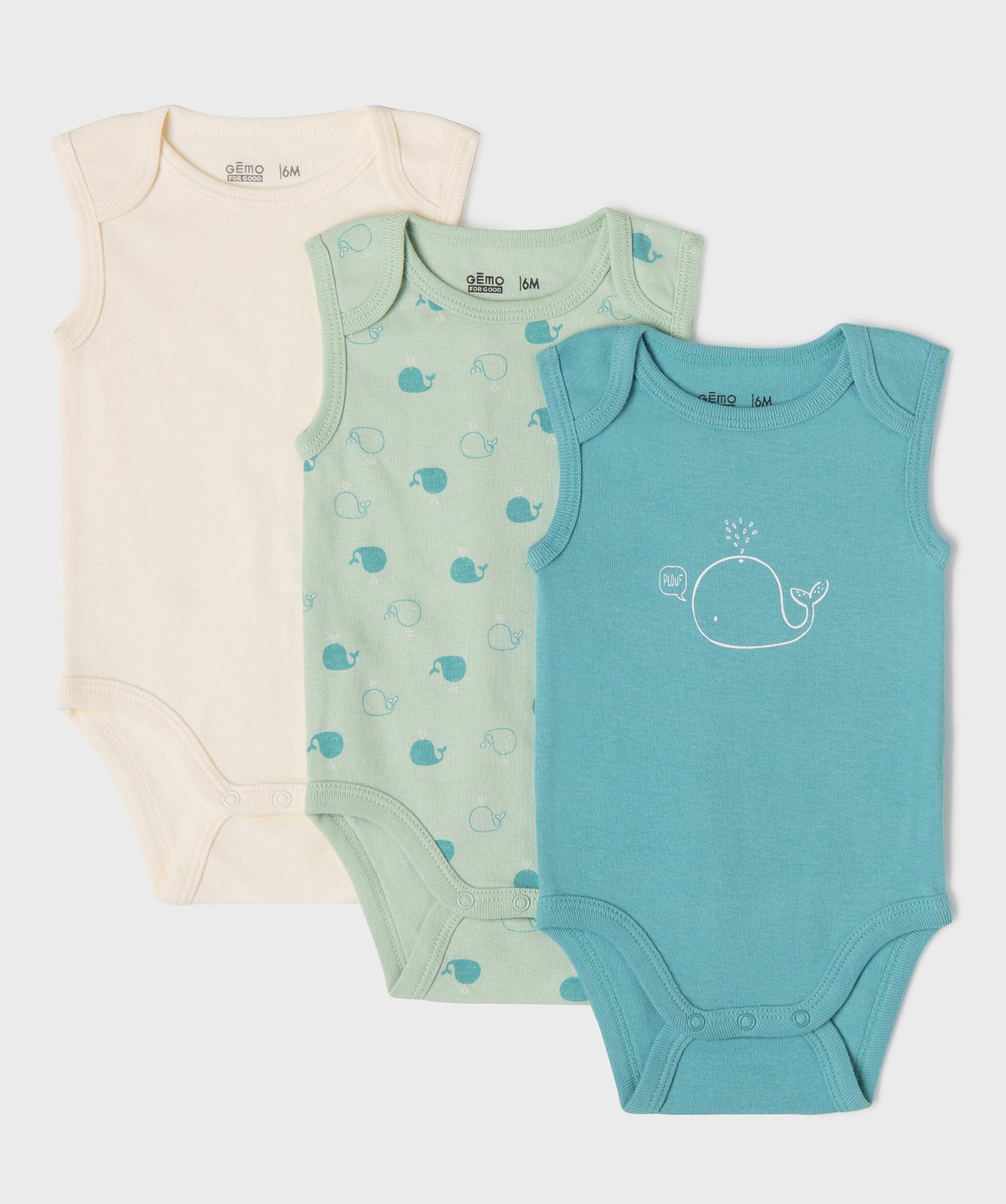 Body sans manches motifs baleines bébé garçon (lot de 3) bleu