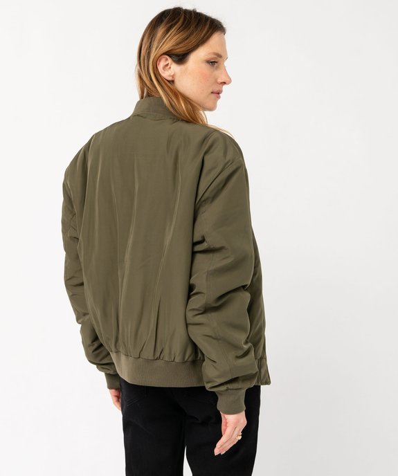 Simple et efficace, découvrez le bomber pour femme ! Un blouson zippé, finement rembourré, à la matière satinée féminine mais à la coupe décontractée. Reprenant les codes du bomber aviateur classique, le blouson est équipé de 2 poches raglan à bouton-pression, d'une poche zippée sur le bras, d'une doublure matelassée et de finition en bord-côte ton sur ton au col, aux poignets et dans le bas.