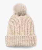 Bonnet à pompon avec fil métallisé fille beige