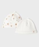 Bonnet de naissance bébé en jersey de coton (lot de 2) blanc